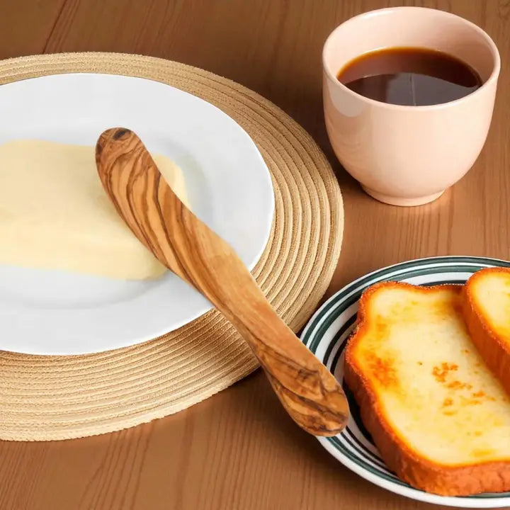 Meet the most versatile tool in your kitchen: our beautiful, handcrafted olive wood butter spreader. 🌿 This elegant tool is more than what its name suggests; it's the perfect handmade jam knife for your morning toast, a versatile wooden condiment spreader for dips and sauces, and an essential rustic charcuterie utensil for your evening appetizer board. It brings a touch of natural, effortless style to any meal.